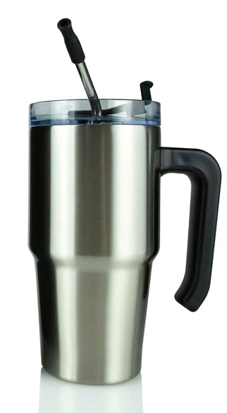 20 oz. Curve with handle, double-wall stainless steel. Vacuum Insulated. Comes with lid and straw.
