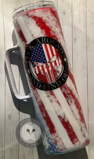 Red, white and blue, stars and stripes. Milky Way technique. 30 oz. skinny with handle. Double wall stainless steel. Insulated. Comes with lid and a straw.